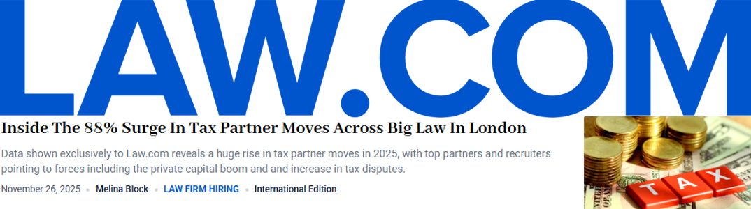 Law.com cites Edwards Gibson data and features commentary by Edwards Gibson Director on Surge in Tax Partner Moves in London